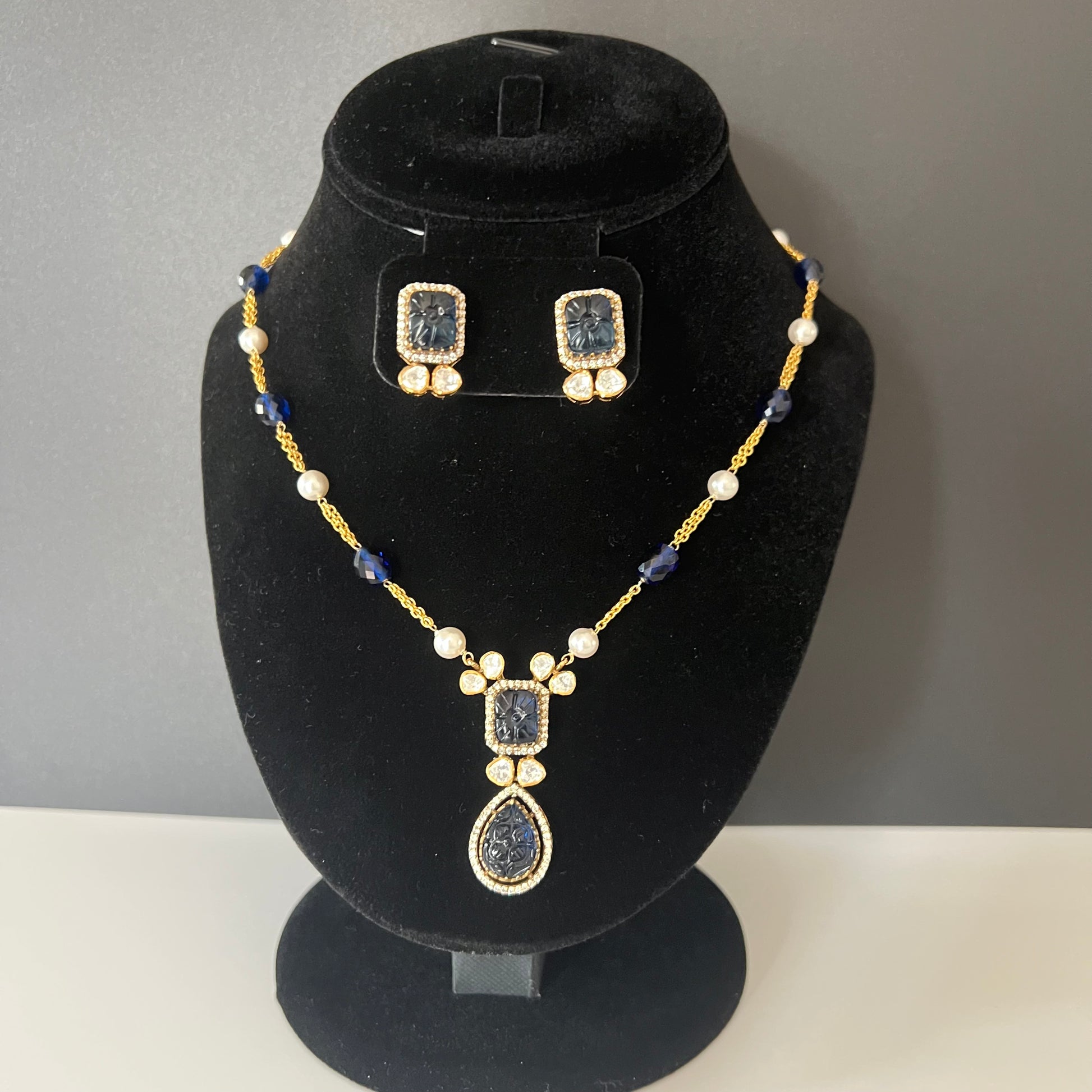 Hallmarked 92.5 Pure Silver Sapphire Stones with Fresh Water White Pearls