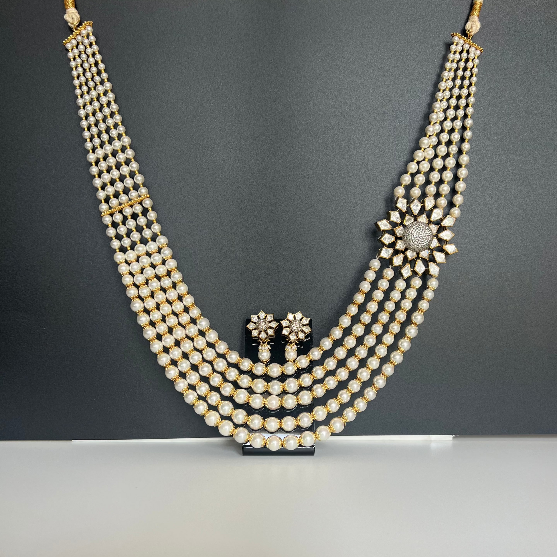 Moissanite "Royal Queen" Adjustable Set With Multi Pearls Chain.