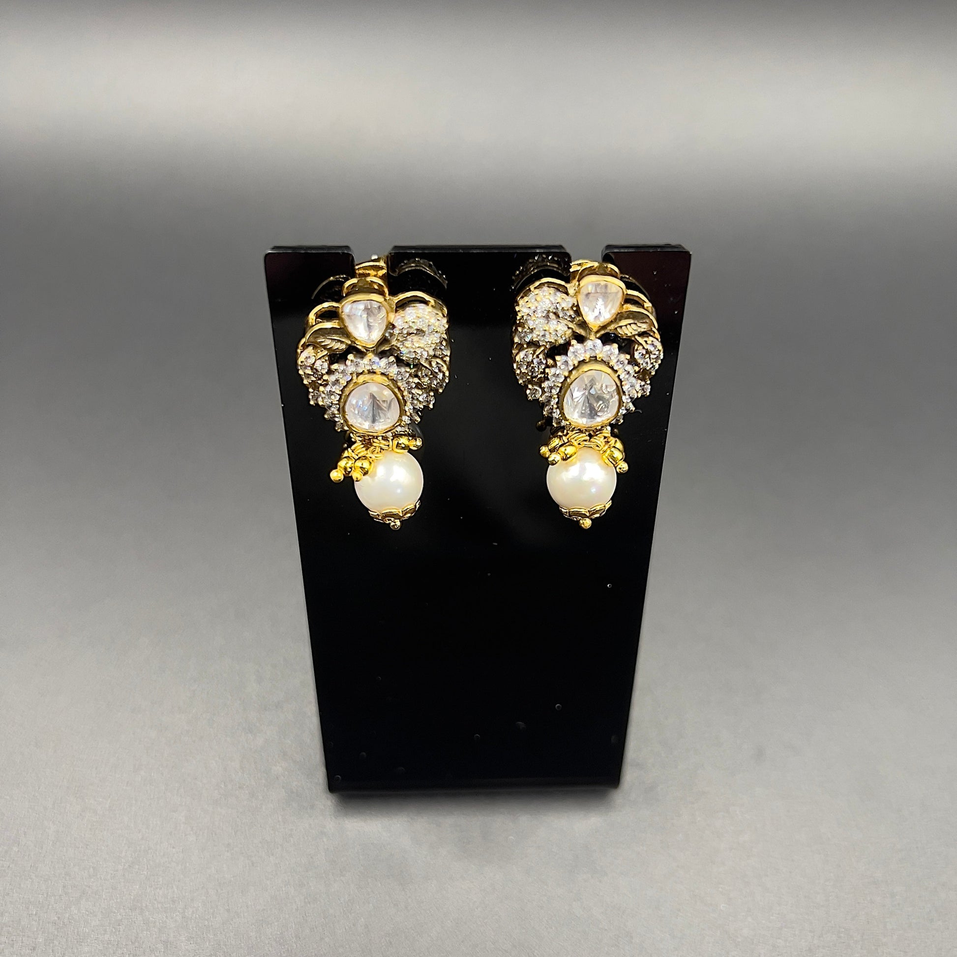 Hallmarked Pure Silver 92.5 Moissanite Pendant and Earrings Curated using Semi-Precious Pearls with a Touch of Silver Pieces.